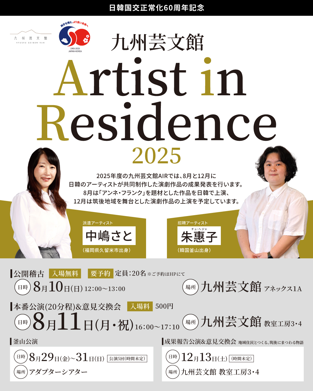 2025年度の九州芸文館AIRでは、8月と12月に日韓のアーティストが共