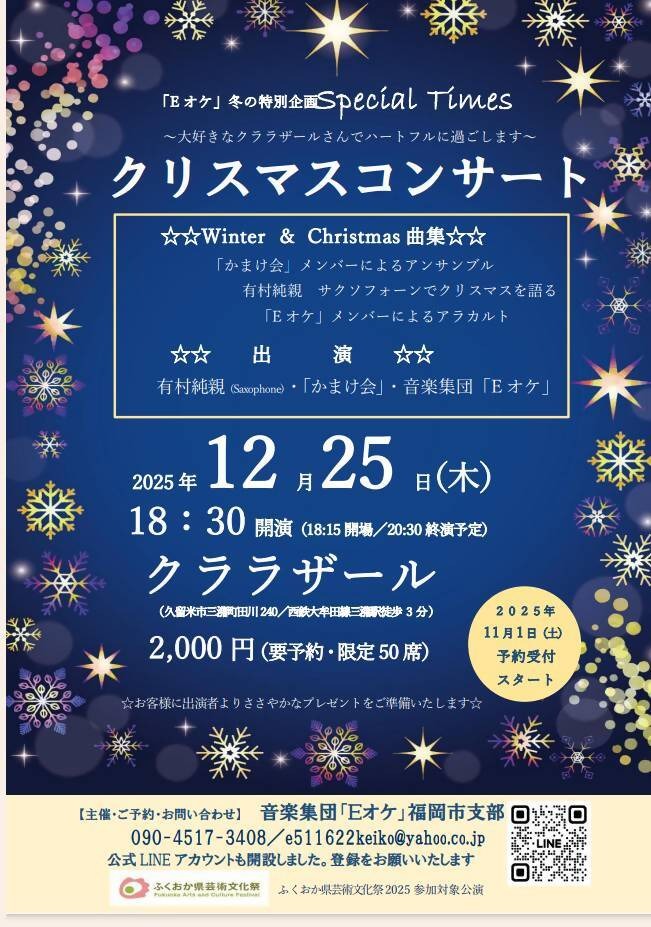 サクソフォーンの名手有村純親氏と「Eオケ」メンバーによるクリスマスコンサ