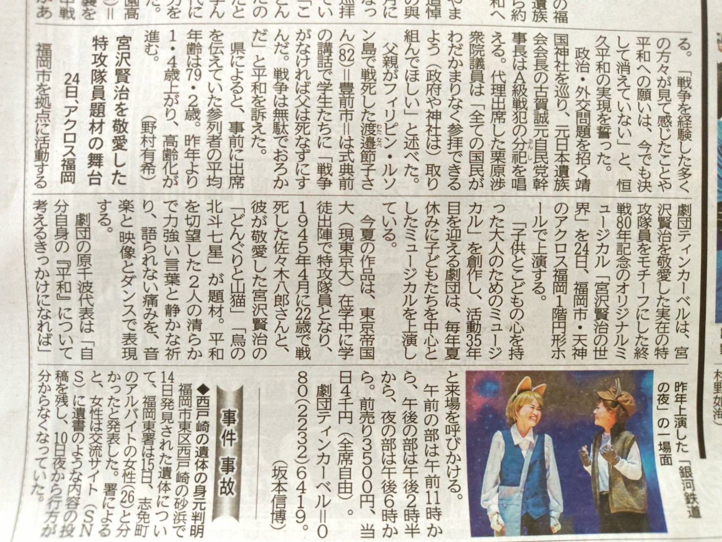 終戦80年記念 ミュージカル『宮沢賢治の世界』上映会