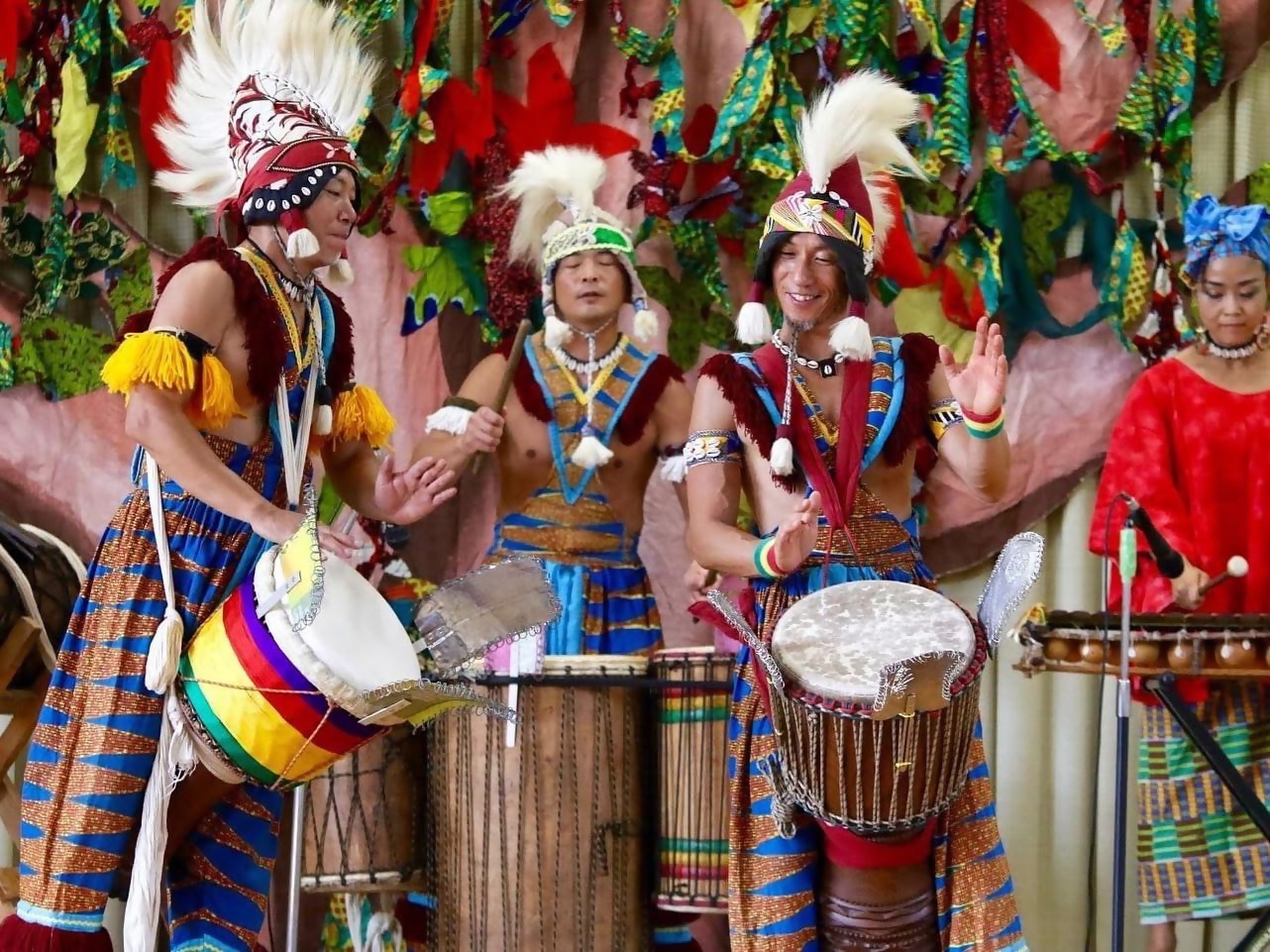 アフリカの伝統打楽器の演奏と、エネルギッシュなダンスのパフォーマンスは、