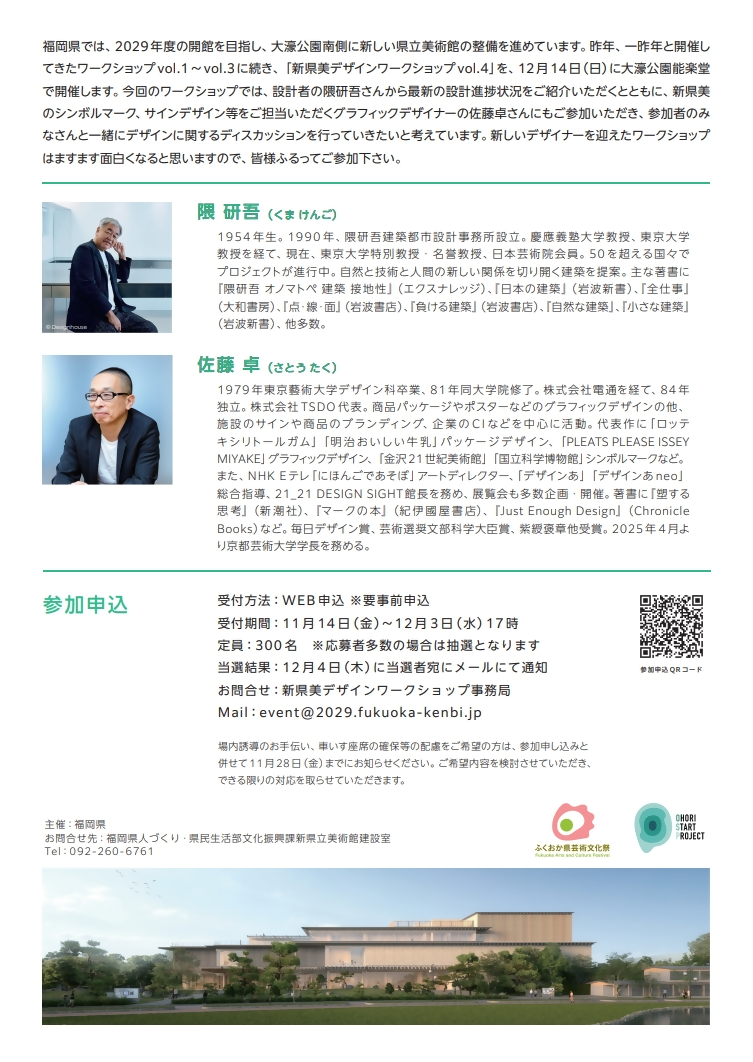 大濠 START PROJECT 「新県美デザインワークショップvol.4 ~隈さんと佐藤さんと新県美~」